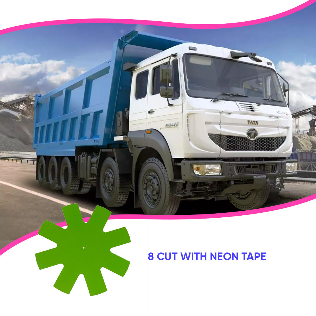 Style meets glow! This 8 Cut Wheelcap with Neon Tape is perfect for truckers who want bold design + night-time shine. It’s like your wheel is doing a victory lap in lights.