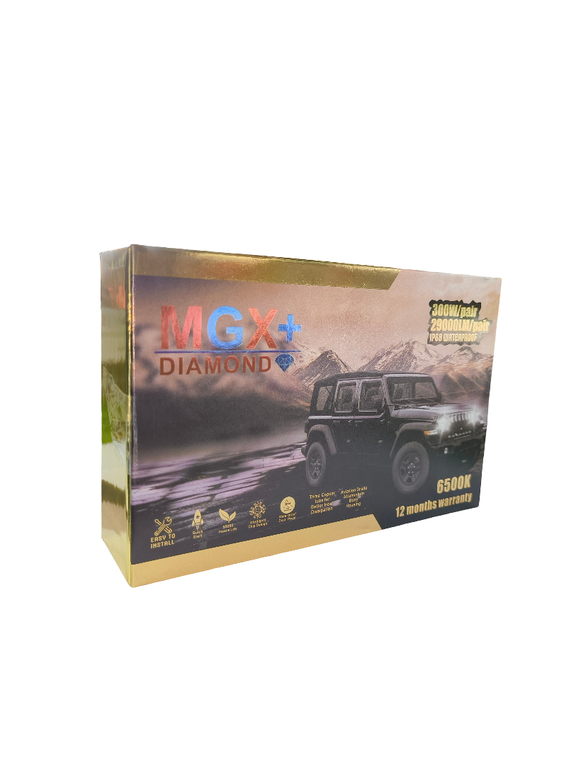 Make your ride more bright with MGX+ DIAMOND HEADLIGHT LED TUBE. 300W/pair 29000LM/pair and IP68 WATERPROOF. this tube light fit on all type of vehicles like car, bike, trucks and other commercial vehicles. this tube light is common voltage 12v/24v. it has 12 months warranty.